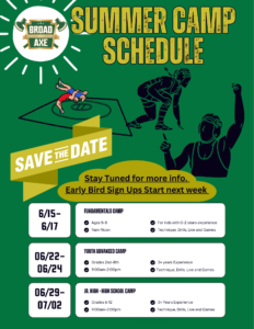 Broad Axe runs Advanced or Elementary/Fundamentals classes Monday through Friday. Click here to view the latest schedule. View Schedule