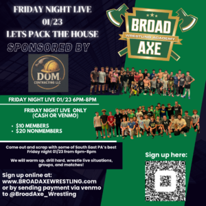 Broad Axe Wrestling Academy is a 501c-3 Nonprofit. Our mission is to grow the sport of wrestling in SouthEastern Pennsylvania by providing the best training opportunities possible at an affordable price.